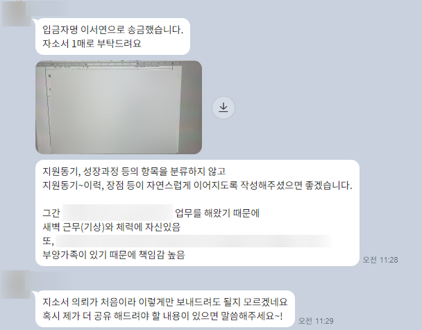 동원로엑스 자소서 첨삭 대필 안녕하세요! 벌써 10년 넘게 자소서 컨설팅을 해오고 있는 베테랑입니다. 매년 2000명 넘는 분들의 자소서를 첨삭하면서 정말 다양한 합격 스토리를 만들어왔죠. 동원로엑스 지원자분들을 위한 꿀팁, 제가 아낌없이 풀어드릴게요! 솔직히 말씀드리면, 동원로엑스 자소서는 물류 산업에 대한 깊은 이해와 회사에 대한 애정이 느껴져야 합니다. 제가 직접 첨삭/대필하면서 얻은 노하우들을 통해 여러분의 자소서가 빛을 보도록 …