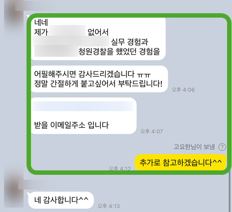 청원경찰 채용공고, 자기소개서 쓰는법 안녕하세요! 대기업 출신 자기소개서 컨설팅 전문가입니다. 최근 청원경찰 채용이 꽤 많아졌죠? 아무래도 공공기관 안전에 대한 중요성이 더 커지면서 그런 것 같아요. 제가 매년 2000명 이상의 자소서 컨설팅을 진행하면서 정말 다양한 분들을 만나뵙는데, 청원경찰 준비하시는 분들의 열정도 대단하더라고요. 자소서 첨삭, 작성 대필, 작성대행 모두 자신 있습니다! 특히, 제가 직접 첨삭/대필하면서 얻은 노하우들을 …